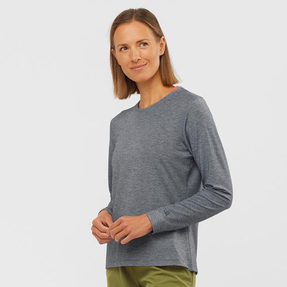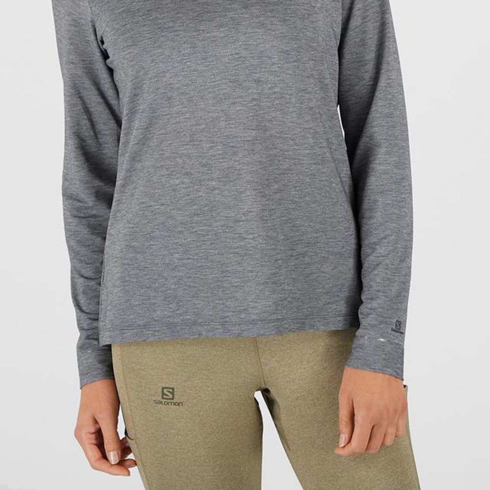 Salomon ESSENTIAL LONG SLEEVE Capa Intermedia Mujer - Negras - Colombia (79160-EDBK)