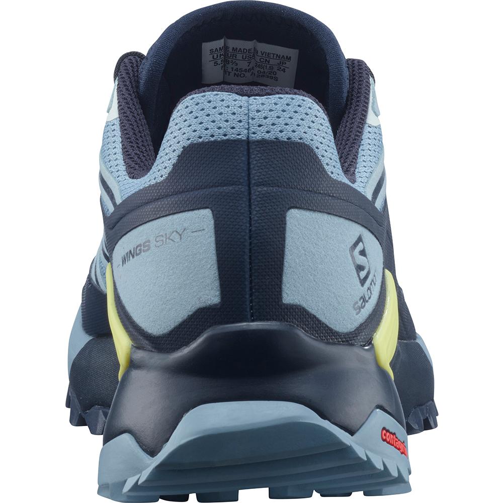 Salomon built the Wings Sky running shoe for adventures on rough, high terrain. With an anti-debris mesh upper, the breathable fabric resists abrasion without weighing you down. Enhanced support is provided by the Advanced Chassis, which maximises motion control to keep you stable on uneven ground. A Contagrip TA sole with 4mm lugs completes the set, so you can take changing altitudes in your stride.
